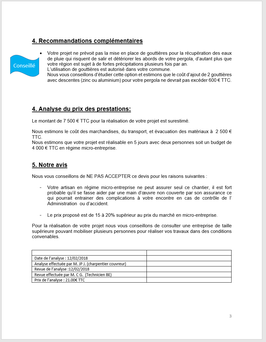 Pour chacun de vos devis vous recevez un rapport détaillé qui reprend l’ensemble des points analysés et les conseils de nos experts